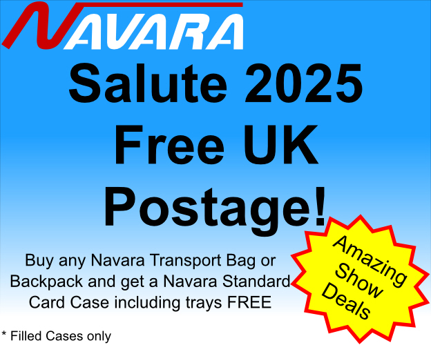 Our amazing show deal saving you £25.00 of a FREE standard size card case (NSC), including trays to fill it with FREE UK postage is available via freephone (0800-6126-430), email (sales@navaracases.com) or Facebook Message (https://www.facebook.com/KRMulticase). To take advantage of this offer, just purchase any filled Navara Transport Bag. Choose Custom trays in your case and you save £31!
