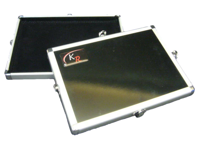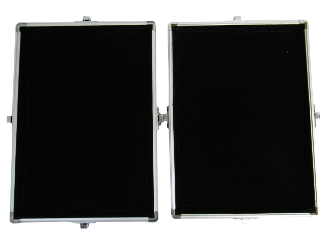 The black aluminium accessory case holds all your dice, tape measures, templates and cards. In fact it can hold almost everything that you need for gaming. The lid is attached by 4 snap over clips to keep all the contents safe. The removable lid is designed for rolling your dice in on the gaming table - no more dice knocking over your figures or rolling on the floor - you use one half and your opponent uses the other!