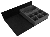 25 troops on 25mm bases with dynamic poses up to 40mm tall, 25 compartments 40mm x 30mm, 25mm deep Half width tray 255mm x 190mm