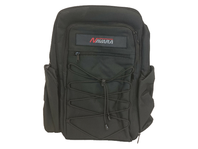 The Navara Backpack, when expanded, carries eight 25mm deep full width trays, or any combination of full or half width trays to fill the same available space. It has 2 compartments, each carrying four 25mm deep trays. The expandable section can be zipped closed to make the backpack smaller when needed. The Navara backpack includes adjustable straps and a carry handle as well as many external pockets for accessories. It is manufactured from durable waterproof polyester and fully lined.