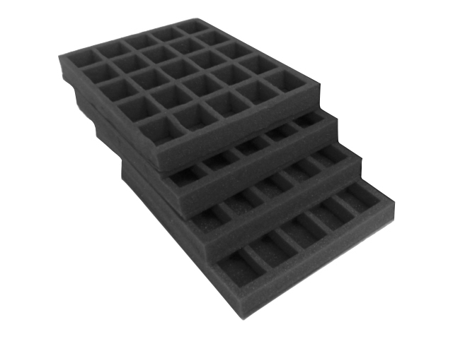 - 100 troops on 25mm bases with dynamic poses up to 40mm tall. 100 compartments 25mm deep, each 40mm x 30mm