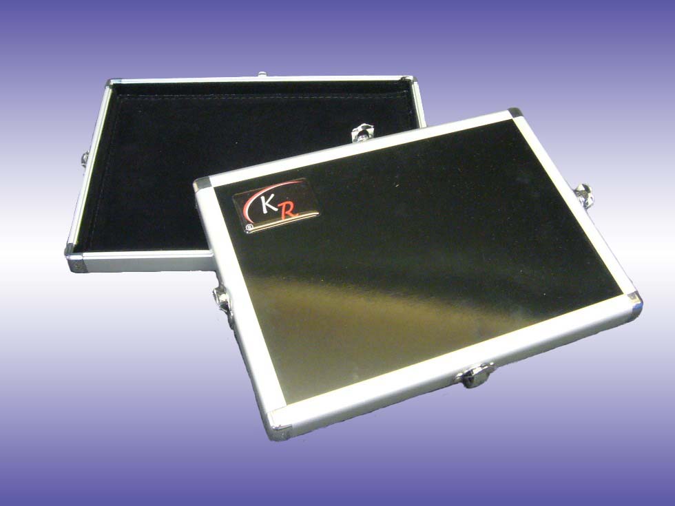 The black aluminium accessory case holds all your dice, tape measures, templates and cards. In fact it can hold almost everything that you need for gaming. The lid is attached by 4 snap over clips to keep all the contents safe. The removable lid is designed for rolling your dice in on the gaming table - no more dice knocking over your figures or rolling on the floor - you use one half and your opponent uses the other!