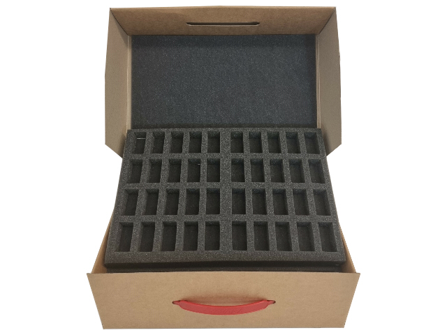 This Navara Case Set comprises a Navara standard size Card case and includes a set of trays to carry 160 taller troops on 25mm bases. 160 compartments 25mm deep, each 50mm x 25mm