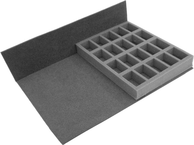 Replacement Tray for Warhammer SKIRMISH or BATTLE or CRUSADE plastic figure case. Carry 20 troops on 32mm bases, ideal for 2 squads of 10 troops on 32mm bases up to 50mm tall (20 figures total). 20 compartments 50mm x 32mm, 32mm deep. This new size GW tray is 255mm x 190mm x 38mm. Carry 3 of these in a SKIRMISH case (60 troops), 5 in a BATTLE case (100 troops) or 10 in a CRUSADE case (200 troops)! KR Reference ID: GWTroop20G
