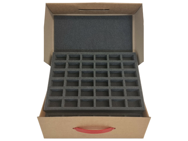 Carry 216 dynamically posed troops on 25mm bases up to 55mm tall with these 2 cases