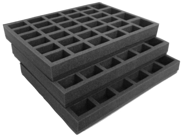 - 102 Troops on 25 - 32mm bases, ideal for 3 squads of 10 troops on 25 - 32mm bases up to 50mm tall, plus 4 HQ figures/very dynamically posed figures (34 figures total). 30 compartments 32mm x 50mm, and 4 compartments 50mm x 50mm, 32mm deep .