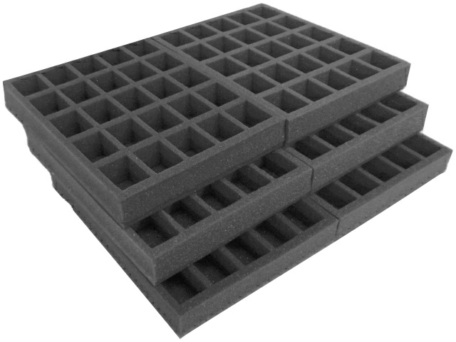 - 150 troops on 25-32mm bases up to 40mm tall. 150 compartments 35mm deep, each 40mm x 30mm. Half size trays for added flexibility