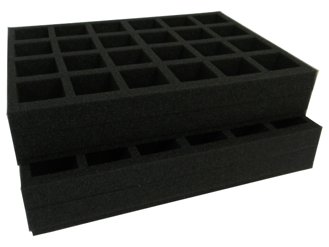 - 48 Troops on 40 - 50mm bases, ideal for HQ figures/very dynamically posed figures (48 figures total). 24 compartments 50mm x 50mm, 55mm deep per tray.