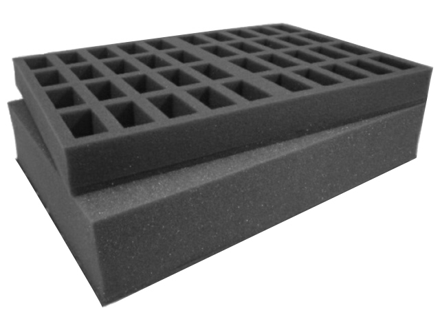 40 taller troops on 25mm bases plus a variety of models, monsters and vehicles. Pick&pluck tray 80mm deep with a grid of 2cm pick&pluck removable squares, troop tray compartments 50mm x 25mm, 35mm deep