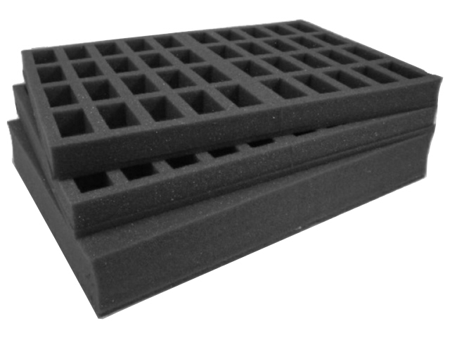 - 80 taller troops on 25mm bases plus a variety of models/monsters. Pick&pluck tray 55mm deep, 20mm pick&pluck cells, troop tray compartments 50mm x 25m, 25mm deep.