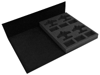 18 troops on 25-32mm bases plus a variety of models, monsters and vehicles. Pick&pluck tray 80mm deep, 20mm pick&pluck cells, troop tray compartments 52mm x 36mm, 35mm deep