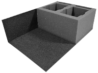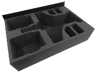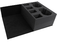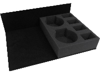 Holds: To be used to fit 5 trays for 32mm diameter bases into the Large Card Case and carry 180 figures. Put this filler pad in first!