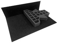 20 taller troops on 25mm bases plus a variety of models, monsters and vehicles. Pick&pluck tray 80mm deep with a grid of 2cm pick&pluck removable squares, troop tray compartments 50mm x 25mm, 35mm deep holds: