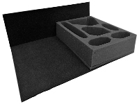 Holds: To be used to fit 5 trays for 32mm diameter bases into the Large Card Case and carry 180 figures. Put this filler pad in first!