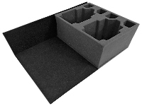 Holds: To be used to fit 5 trays for 32mm diameter bases into the Large Card Case and carry 180 figures. Put this filler pad in first!