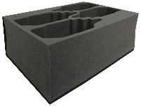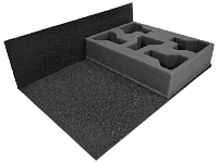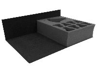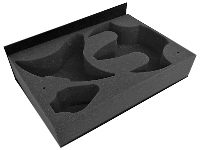 Holds: To be used to fit 5 trays for 32mm diameter bases into the Large Card Case and carry 180 figures. Put this filler pad in first!