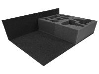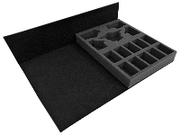 80 taller troops on 25mm bases plus a variety of models, monsters and vehicles. Pick&pluck tray 110mm deep with a grid of 2cm pick&pluck removable squares, troop tray compartments 50mm x 25mm, 25mm deep. holds: