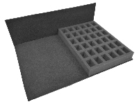 Holds: To be used to fit 5 trays for 32mm diameter bases into the Large Card Case and carry 180 figures. Put this filler pad in first!