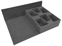 Holds: To be used to fit 5 trays for 32mm diameter bases into the Large Card Case and carry 180 figures. Put this filler pad in first!