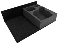 Holds: To be used to fit 5 trays for 32mm diameter bases into the Large Card Case and carry 180 figures. Put this filler pad in first!