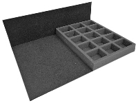 100 troops on 25mm bases with dynamic poses up to 40mm tall, plus a variety of models, monsters and vehicles. Pick&pluck tray 110mm deep with a grid of 2cm pick&pluck removable squares, troop tray compartments 40mm x 25mm, 25mm deep . holds: