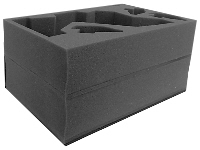 Holds: To be used to fit 5 trays for 32mm diameter bases into the Large Card Case and carry 180 figures. Put this filler pad in first!