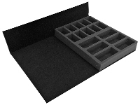 80 taller troops on 25mm bases plus a variety of models, monsters and vehicles. Pick&pluck tray 110mm deep with a grid of 2cm pick&pluck removable squares, troop tray compartments 50mm x 25mm, 25mm deep. holds: