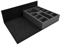 100 troops on 25mm bases with dynamic poses up to 40mm tall, plus a variety of models, monsters and vehicles. Pick&pluck tray 110mm deep with a grid of 2cm pick&pluck removable squares, troop tray compartments 40mm x 25mm, 25mm deep . holds: