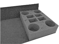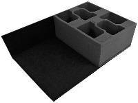 Holds: To be used to fit 5 trays for 32mm diameter bases into the Large Card Case and carry 180 figures. Put this filler pad in first!