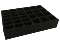 120 troops on 25 - 32 mm bases, ideal for 12 squads of 10 troops on 25 - 32mm bases up to 40mm tall (120 figures total). 120 compartments 40mm x 32mm, 32mm deep .