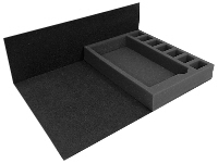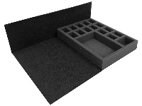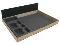 Holds: To be used to fit 5 trays for 32mm diameter bases into the Large Card Case and carry 180 figures. Put this filler pad in first!