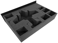 80 taller troops on 25mm bases plus a variety of models, monsters and vehicles. Pick&pluck tray 110mm deep with a grid of 2cm pick&pluck removable squares, troop tray compartments 50mm x 25mm, 25mm deep. holds: