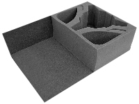 Holds: To be used to fit 5 trays for 32mm diameter bases into the Large Card Case and carry 180 figures. Put this filler pad in first!