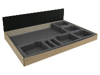 Holds: To be used to fit 5 trays for 32mm diameter bases into the Large Card Case and carry 180 figures. Put this filler pad in first!