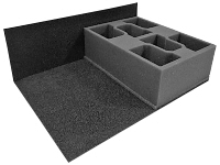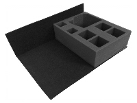Holds: To be used to fit 5 trays for 32mm diameter bases into the Large Card Case and carry 180 figures. Put this filler pad in first!