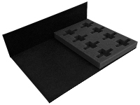 Holds: To be used to fit 5 trays for 32mm diameter bases into the Large Card Case and carry 180 figures. Put this filler pad in first!