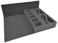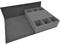 Holds: To be used to fit 5 trays for 32mm diameter bases into the Large Card Case and carry 180 figures. Put this filler pad in first!