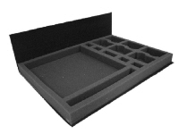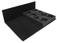 Holds: To be used to fit 5 trays for 32mm diameter bases into the Large Card Case and carry 180 figures. Put this filler pad in first!